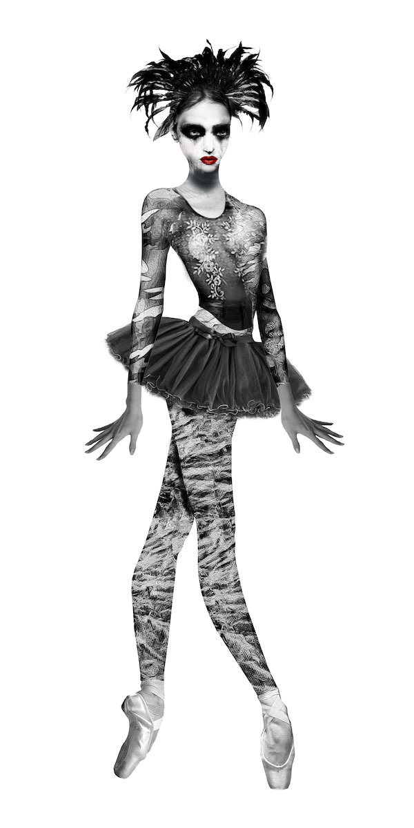“Claudia,” an enchanting artwork by Francisco Crespo and offered at Crespo Art Studio, brings an ethereal yet haunting vision to life. This striking piece combines elements of ballet with surreal undertones, featuring a figure adorned in complex patterns and textures that evoke an air of mystery and elegance. With her theatrical makeup, feathery headdress, and poised stance on pointe, “Claudia” presents a captivating contrast between grace and intensity. Crespo’s use of monochromatic shading, combined with subtle accents, adds depth to this artwork, making it a compelling choice for collectors who appreciate pieces that challenge conventional beauty with avant-garde expression.